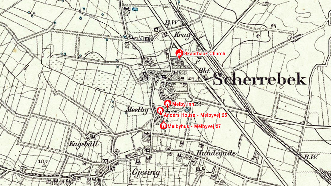 Henry’s home was in Melby which was originally an artisan village in south Skaerbaek. It is also here that Skaerbaek’s two oldest houses are situated - Melby Inn from 1651 and Melbyhus from 1688. We have established that Henry grew up in the house at Melbyvei 25 which was next-door to Melbyhus (Melbyvei 27 which still exists today)